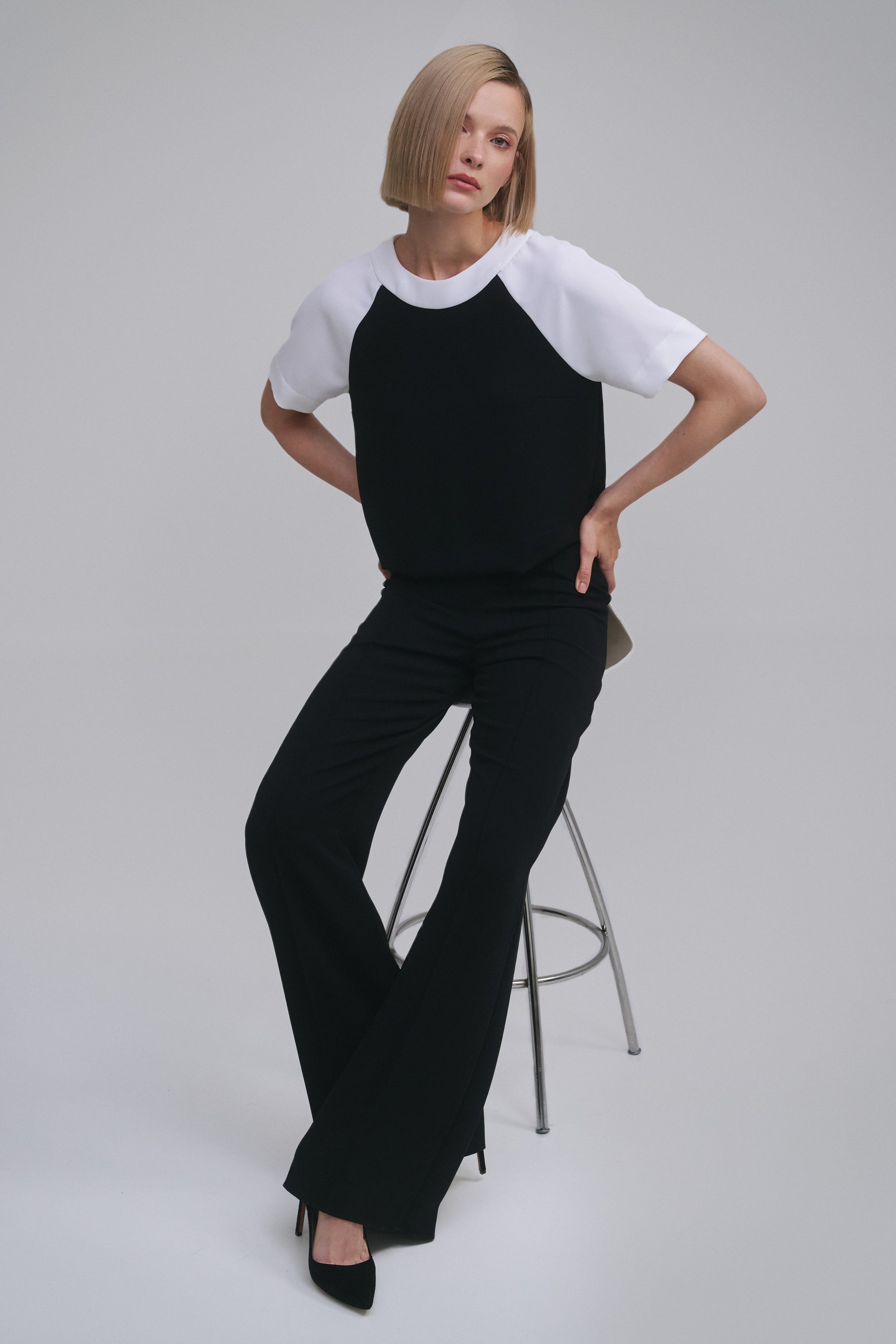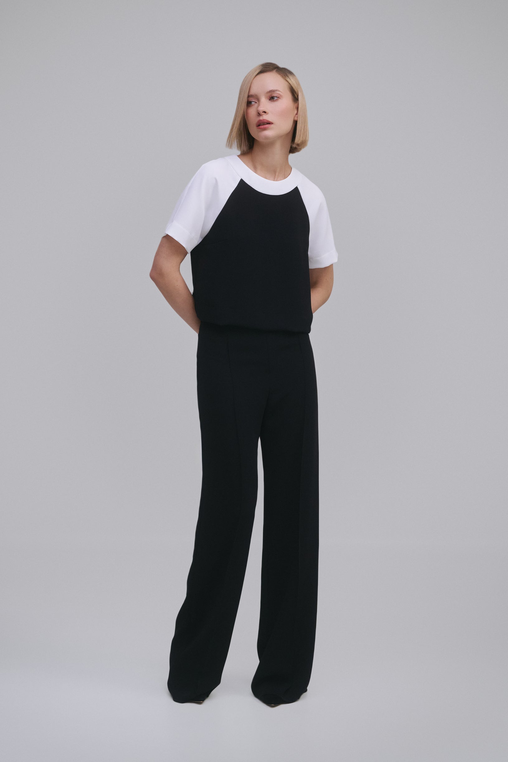 Top blanco y negro con mangas raglán